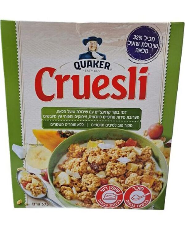 קוואקר קורנפלקס עם פירות טרופים תפוחים וצימוקים