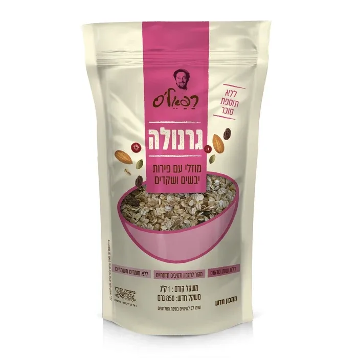 גרנולה רפאלס 850 גרם מוזלי עם פירות יבשים ושקדים ללא תוספת סוכר